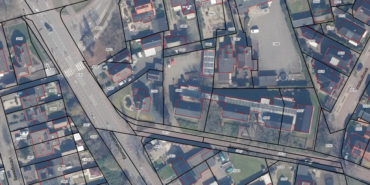 Het perceel waarop Zoomweg 68 staat heeft een oppervlakte van 1092 m². Dit is een zeer groot perceel. De perceeloppervlakte wordt geregistreerd door het Kadaster. Gedetailleerde informatie over de maten van dit perceel kunt u vinden in het rapport Kadastrale kaart met maatvoering van Zoomweg 68.