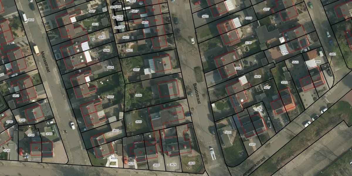 Het perceel waarop Bavostraat 116 staat heeft een oppervlakte van 525 m². Dit is een groot perceel. De perceeloppervlakte wordt geregistreerd door het Kadaster. Gedetailleerde informatie over de maten van dit perceel kunt u vinden in het rapport Kadastrale kaart met maatvoering van Bavostraat 116.
