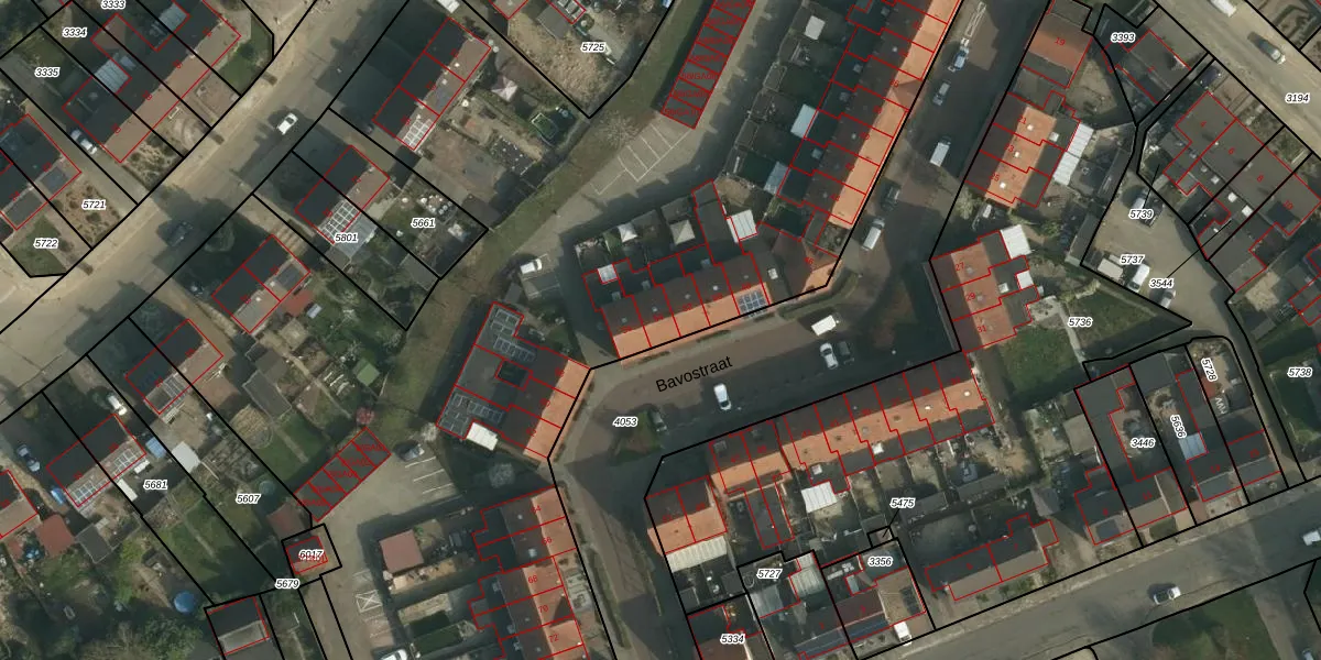 Het perceel waarop Bavostraat 54 staat heeft een oppervlakte van 7972 m². Dit is een zeer groot perceel. De perceeloppervlakte wordt geregistreerd door het Kadaster. Gedetailleerde informatie over de maten van dit perceel kunt u vinden in het rapport Kadastrale kaart met maatvoering van Bavostraat 54.