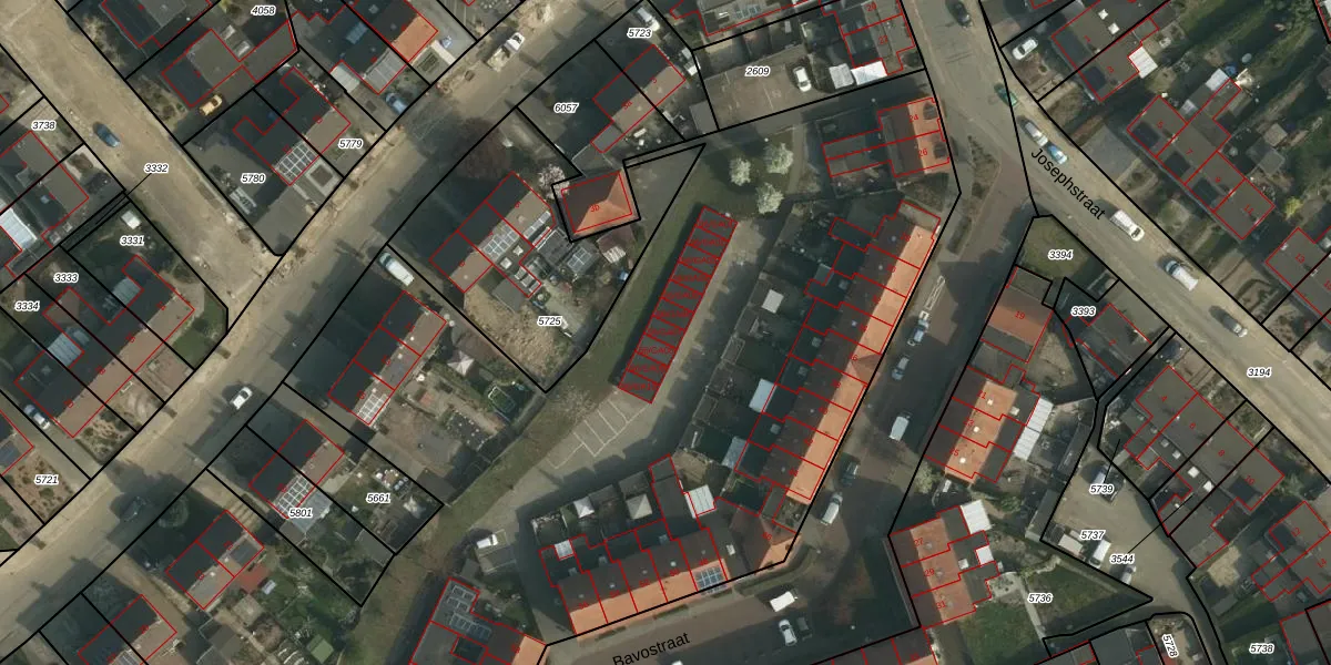 Het perceel waarop Bavostraat 56-GA07 staat heeft een oppervlakte van 7972 m². Dit is een zeer groot perceel. De perceeloppervlakte wordt geregistreerd door het Kadaster. Gedetailleerde informatie over de maten van dit perceel kunt u vinden in het rapport Kadastrale kaart met maatvoering van Bavostraat 56-GA07.