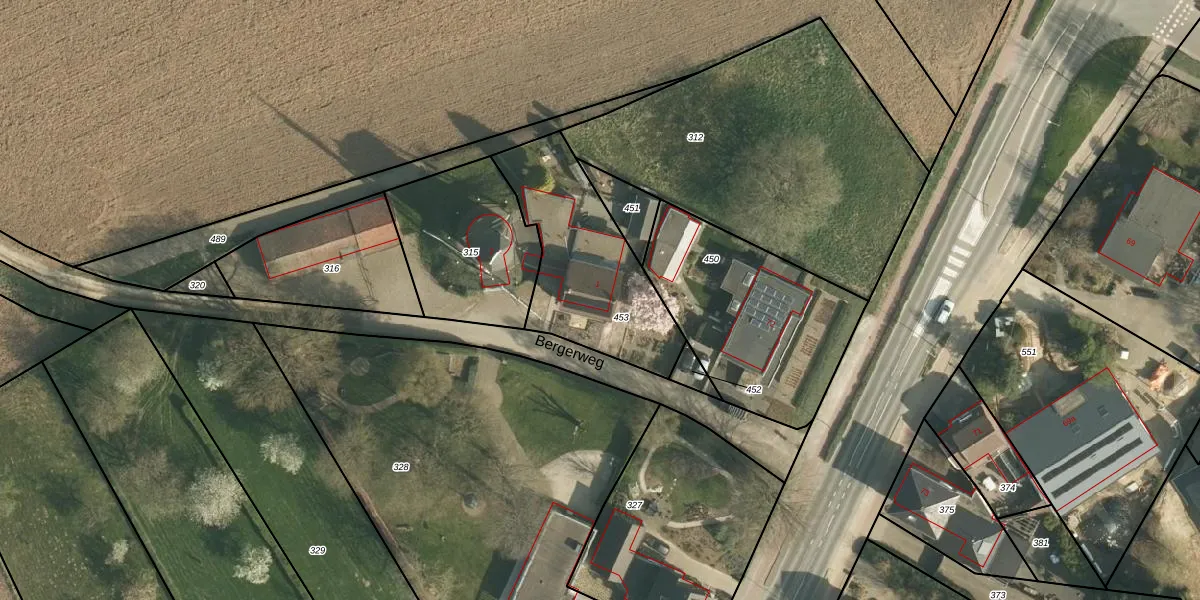 Bergerweg 1 is gelegen op kadastraal perceel NUT00O453. Deze kadastrale aanduiding is uniek en wordt gebruikt door het Kadaster om eigendomsrechten en andere zakelijke rechten vast te leggen. Het perceel maakt onderdeel uit van de kadastrale gemeente Nuth.
