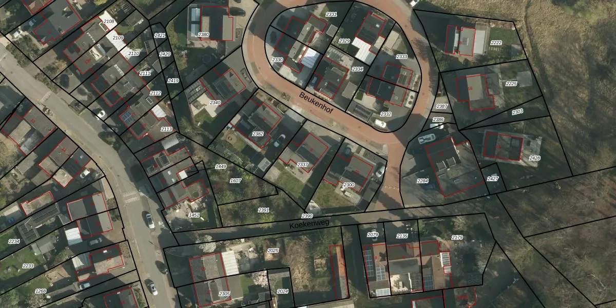 Gebruik de zoekbalk of klik op een perceel voor informatie over de adressen binnen dit perceel.