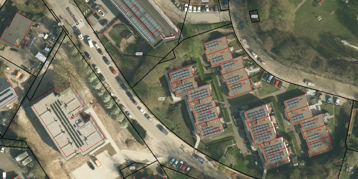 Het perceel waarop Boschweg 50 staat heeft een oppervlakte van 6565 m². Dit is een zeer groot perceel. De perceeloppervlakte wordt geregistreerd door het Kadaster. Gedetailleerde informatie over de maten van dit perceel kunt u vinden in het rapport Kadastrale kaart met maatvoering van Boschweg 50.