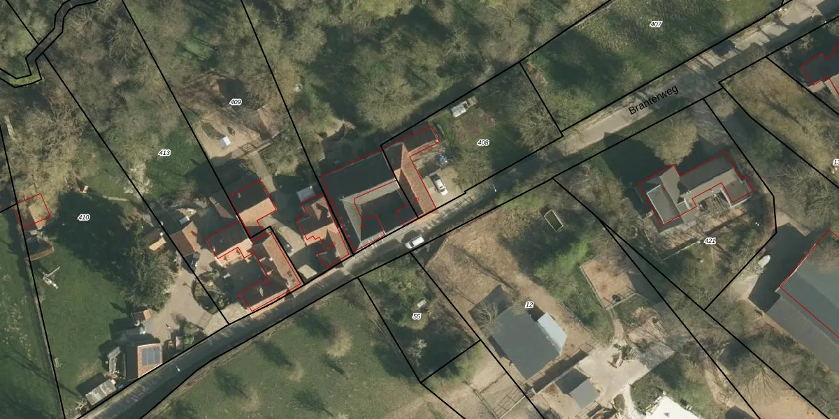 Branterweg 16 is gelegen op kadastraal perceel NUT00N408. Deze kadastrale aanduiding is uniek en wordt gebruikt door het Kadaster om eigendomsrechten en andere zakelijke rechten vast te leggen. Het perceel maakt onderdeel uit van de kadastrale gemeente Nuth.