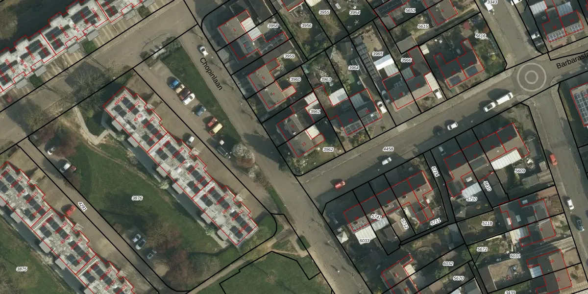 Gebruik de zoekbalk of klik op een perceel voor informatie over de adressen binnen dit perceel.