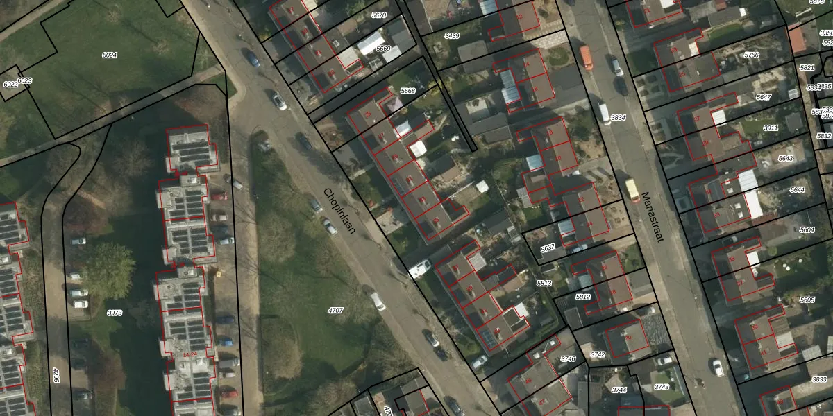 Het perceel waarop Chopinlaan 33 staat heeft een oppervlakte van 3434 m². Dit is een zeer groot perceel. De perceeloppervlakte wordt geregistreerd door het Kadaster. Gedetailleerde informatie over de maten van dit perceel kunt u vinden in het rapport Kadastrale kaart met maatvoering van Chopinlaan 33.
