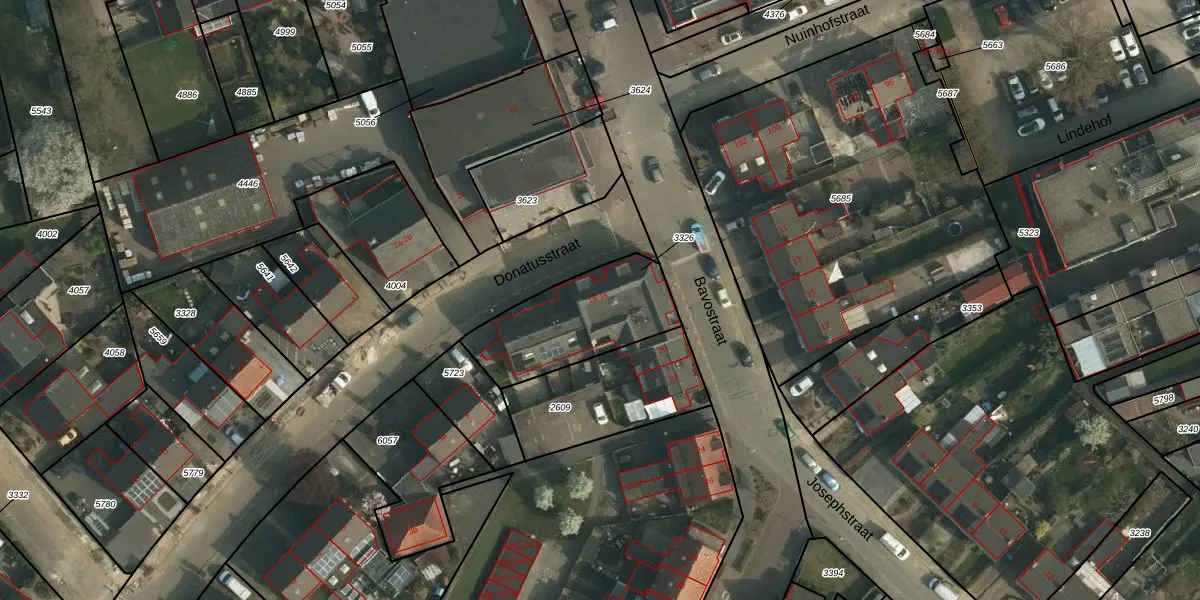 Het perceel waarop Donatusstraat 1-k staat heeft een oppervlakte van 407 m². Dit is een groot perceel. De perceeloppervlakte wordt geregistreerd door het Kadaster. Gedetailleerde informatie over de maten van dit perceel kunt u vinden in het rapport Kadastrale kaart met maatvoering van Donatusstraat 1-k.