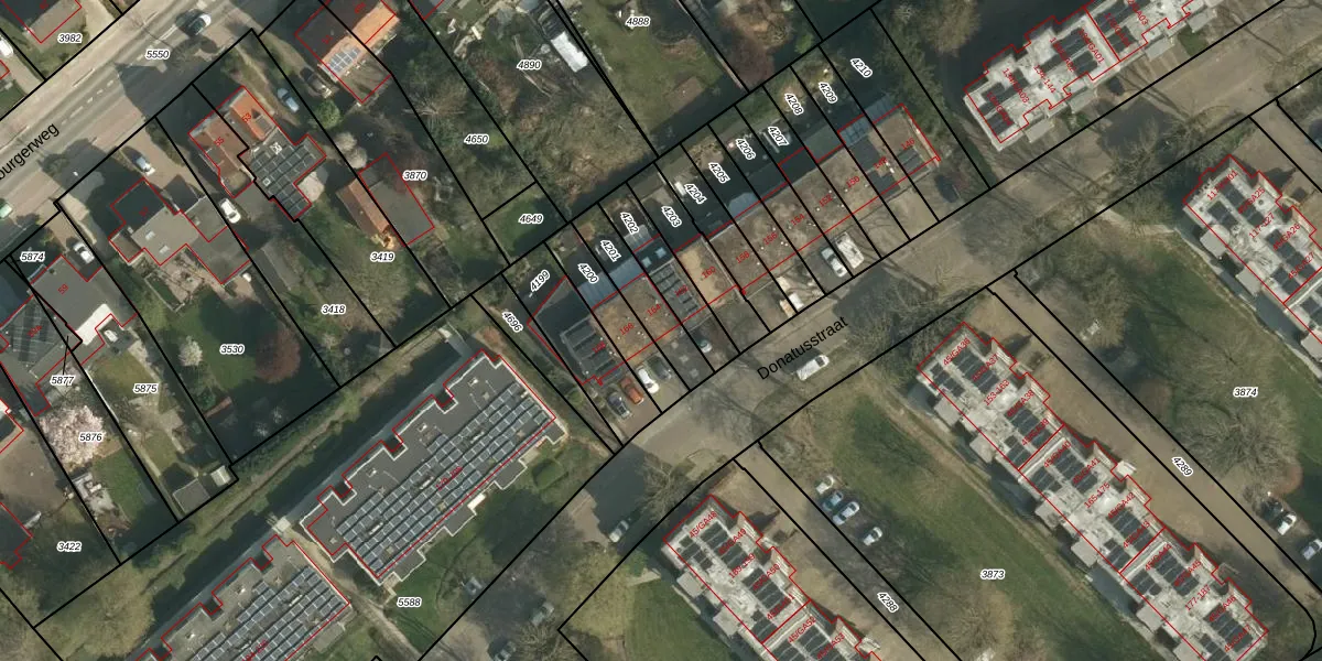 Het perceel waarop Donatusstraat 164 staat heeft een oppervlakte van 159 m². Dit is een middelgroot perceel. De perceeloppervlakte wordt geregistreerd door het Kadaster. Gedetailleerde informatie over de maten van dit perceel kunt u vinden in het rapport Kadastrale kaart met maatvoering van Donatusstraat 164.