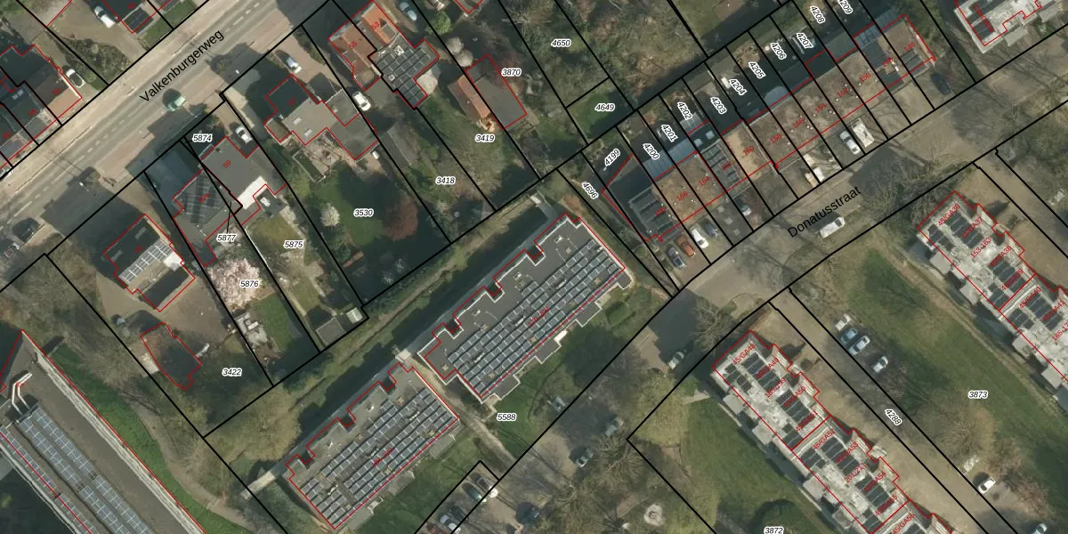Het perceel waarop Donatusstraat 174 staat heeft een oppervlakte van 3130 m². Dit is een zeer groot perceel. De perceeloppervlakte wordt geregistreerd door het Kadaster. Gedetailleerde informatie over de maten van dit perceel kunt u vinden in het rapport Kadastrale kaart met maatvoering van Donatusstraat 174.