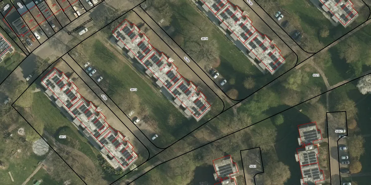 Het perceel waarop Donatusstraat 187 staat heeft een oppervlakte van 3160 m². Dit is een zeer groot perceel. De perceeloppervlakte wordt geregistreerd door het Kadaster. Gedetailleerde informatie over de maten van dit perceel kunt u vinden in het rapport Kadastrale kaart met maatvoering van Donatusstraat 187.