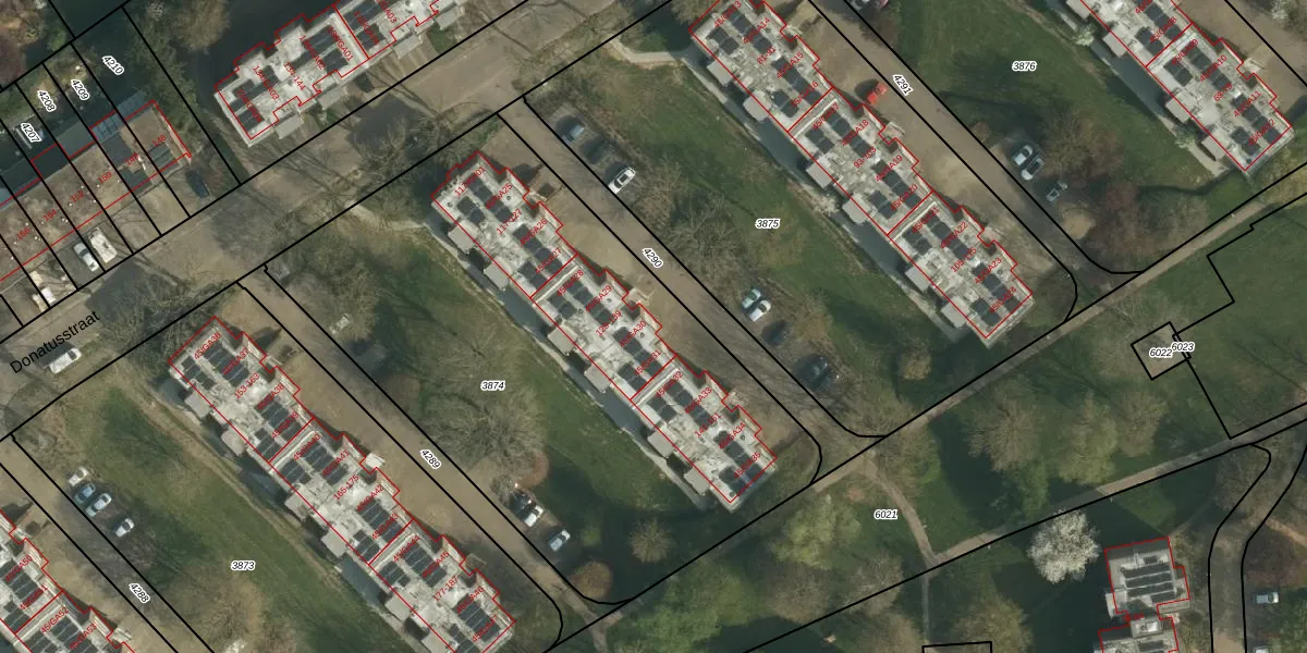Het perceel waarop Donatusstraat 45-GA30 staat heeft een oppervlakte van 3150 m². Dit is een zeer groot perceel. De perceeloppervlakte wordt geregistreerd door het Kadaster. Gedetailleerde informatie over de maten van dit perceel kunt u vinden in het rapport Kadastrale kaart met maatvoering van Donatusstraat 45-GA30.