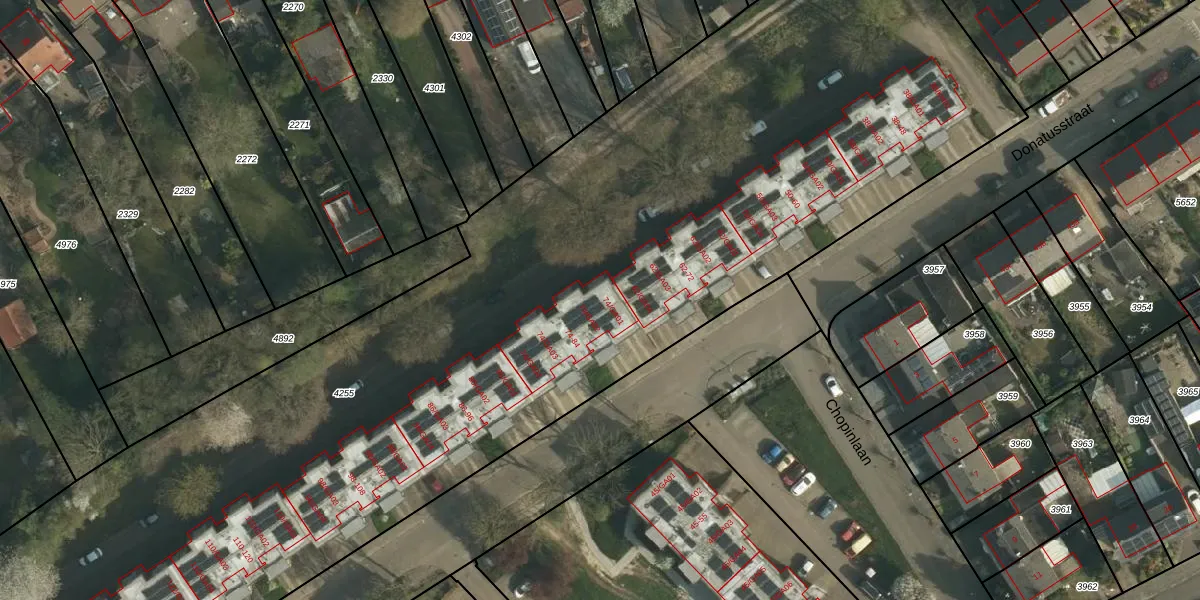 Het perceel waarop Donatusstraat 74-GA03 staat heeft een oppervlakte van 7510 m². Dit is een zeer groot perceel. De perceeloppervlakte wordt geregistreerd door het Kadaster. Gedetailleerde informatie over de maten van dit perceel kunt u vinden in het rapport Kadastrale kaart met maatvoering van Donatusstraat 74-GA03.