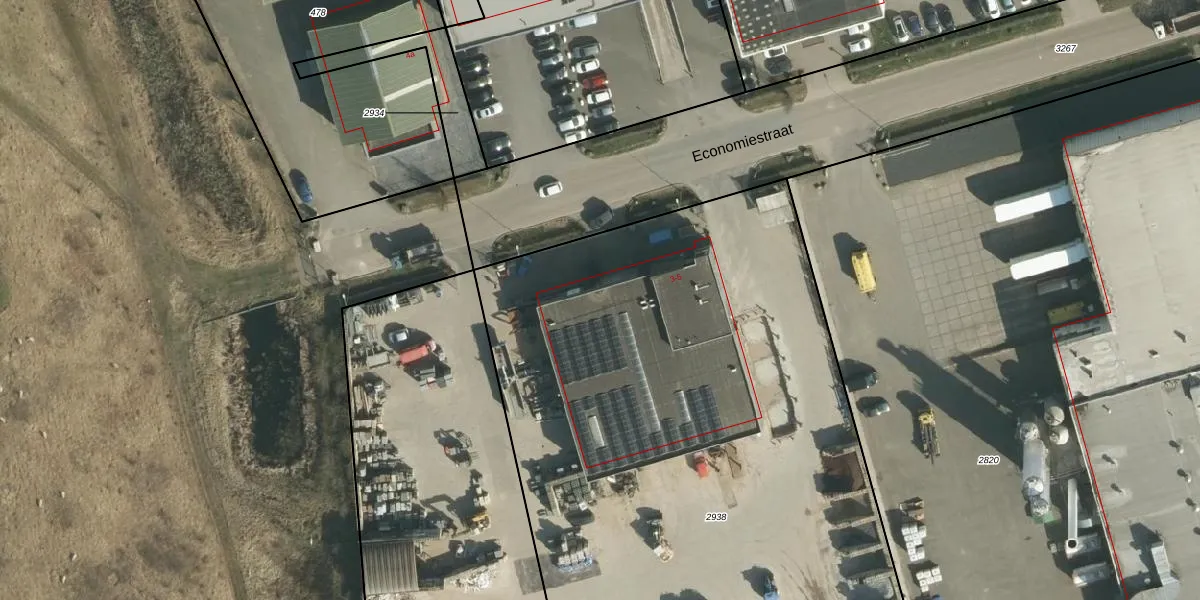 Het perceel waarop Economiestraat 5 staat heeft een oppervlakte van 6310 m². Dit is een zeer groot perceel. De perceeloppervlakte wordt geregistreerd door het Kadaster. Gedetailleerde informatie over de maten van dit perceel kunt u vinden in het rapport Kadastrale kaart met maatvoering van Economiestraat 5.