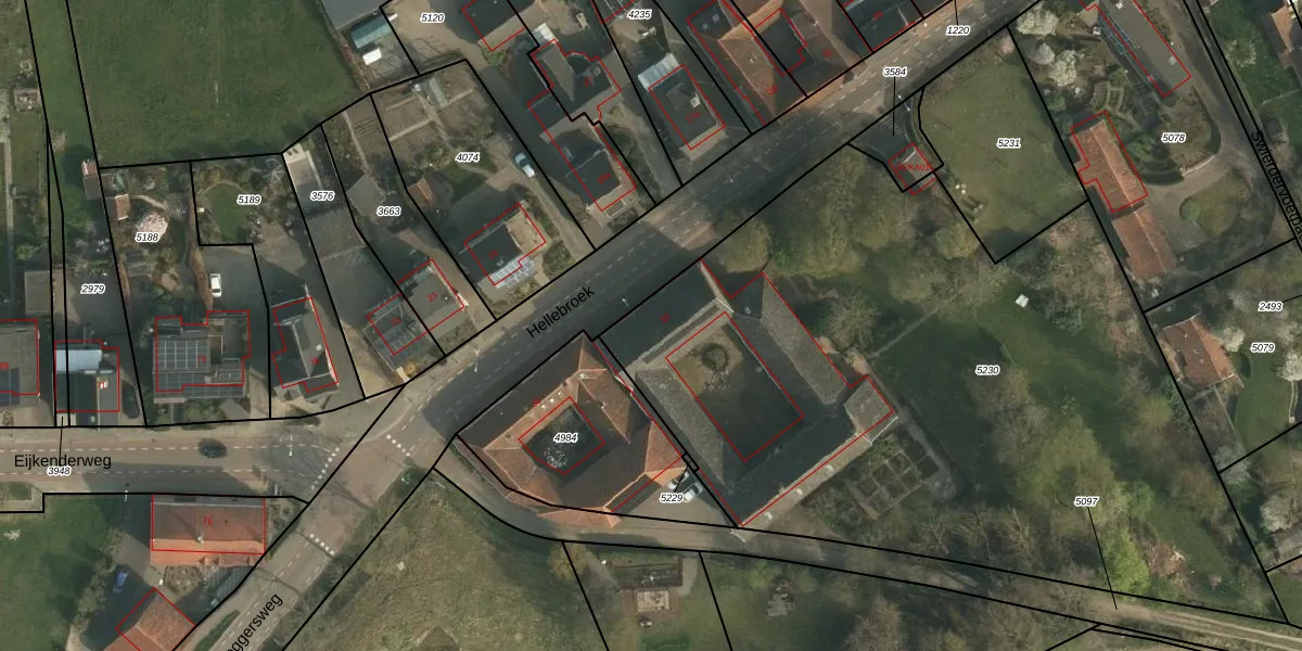 Het perceel waarop Hellebroek 32 staat heeft een oppervlakte van 4487 m². Dit is een zeer groot perceel. De perceeloppervlakte wordt geregistreerd door het Kadaster. Gedetailleerde informatie over de maten van dit perceel kunt u vinden in het rapport Kadastrale kaart met maatvoering van Hellebroek 32.