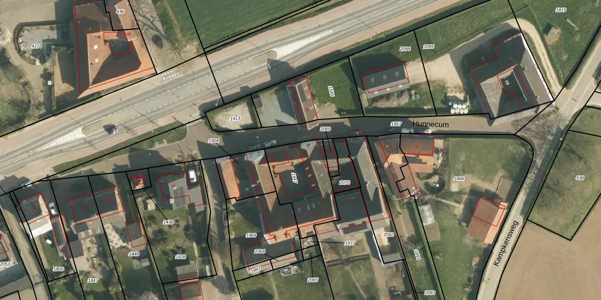 Hunnecum 6-b is gelegen op kadastraal perceel NUT00D1947. Deze kadastrale aanduiding is uniek en wordt gebruikt door het Kadaster om eigendomsrechten en andere zakelijke rechten vast te leggen. Het perceel maakt onderdeel uit van de kadastrale gemeente Nuth.