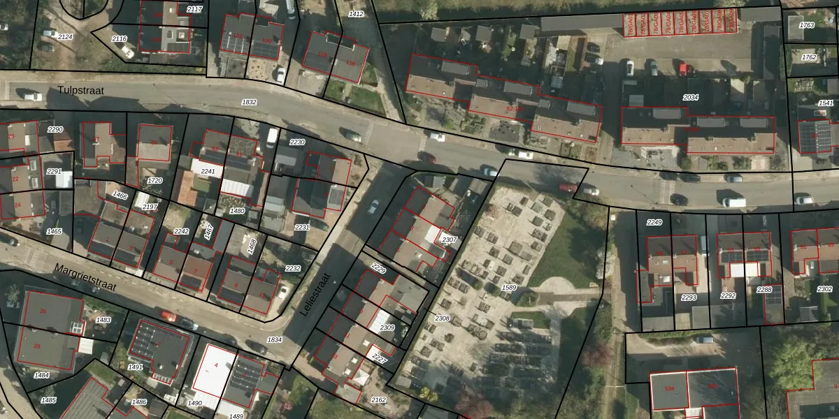 Het perceel waarop Leliestraat 1 staat heeft een oppervlakte van 506 m². Dit is een groot perceel. De perceeloppervlakte wordt geregistreerd door het Kadaster. Gedetailleerde informatie over de maten van dit perceel kunt u vinden in het rapport Kadastrale kaart met maatvoering van Leliestraat 1.