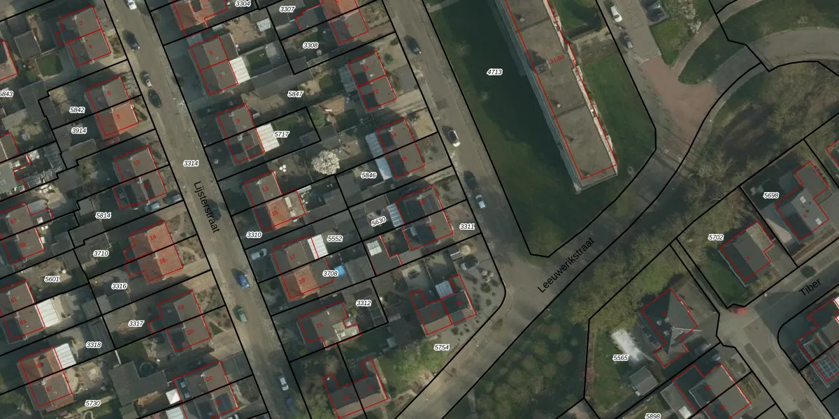 Gebruik de zoekbalk of klik op een perceel voor informatie over de adressen binnen dit perceel.