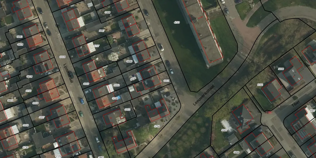 Gebruik de zoekbalk of klik op een perceel voor informatie over de adressen binnen dit perceel.