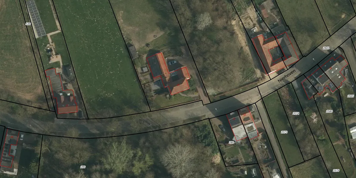 Het perceel waarop Nierhoven 26 staat heeft een oppervlakte van 4725 m². Dit is een zeer groot perceel. De perceeloppervlakte wordt geregistreerd door het Kadaster. Gedetailleerde informatie over de maten van dit perceel kunt u vinden in het rapport Kadastrale kaart met maatvoering van Nierhoven 26.