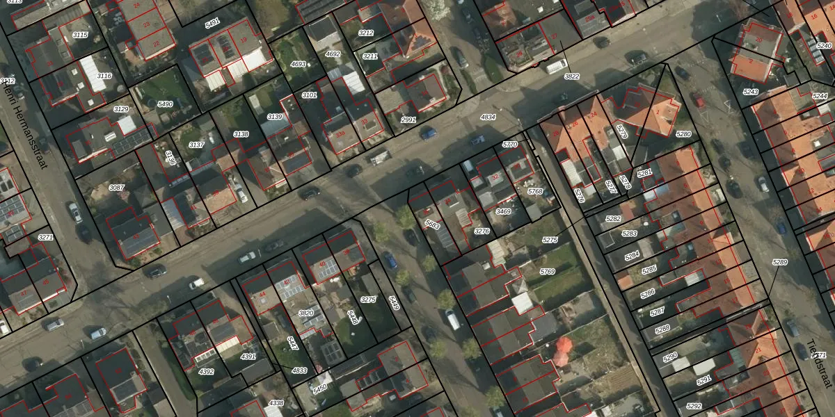 Gebruik de zoekbalk of klik op een perceel voor informatie over de adressen binnen dit perceel.