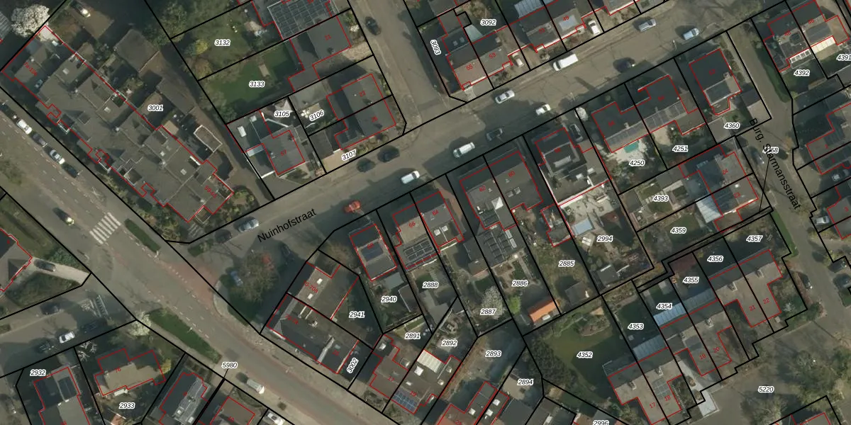 Het perceel waarop Nuinhofstraat 64 staat heeft een oppervlakte van 335 m². Dit is een groot perceel. De perceeloppervlakte wordt geregistreerd door het Kadaster. Gedetailleerde informatie over de maten van dit perceel kunt u vinden in het rapport Kadastrale kaart met maatvoering van Nuinhofstraat 64.