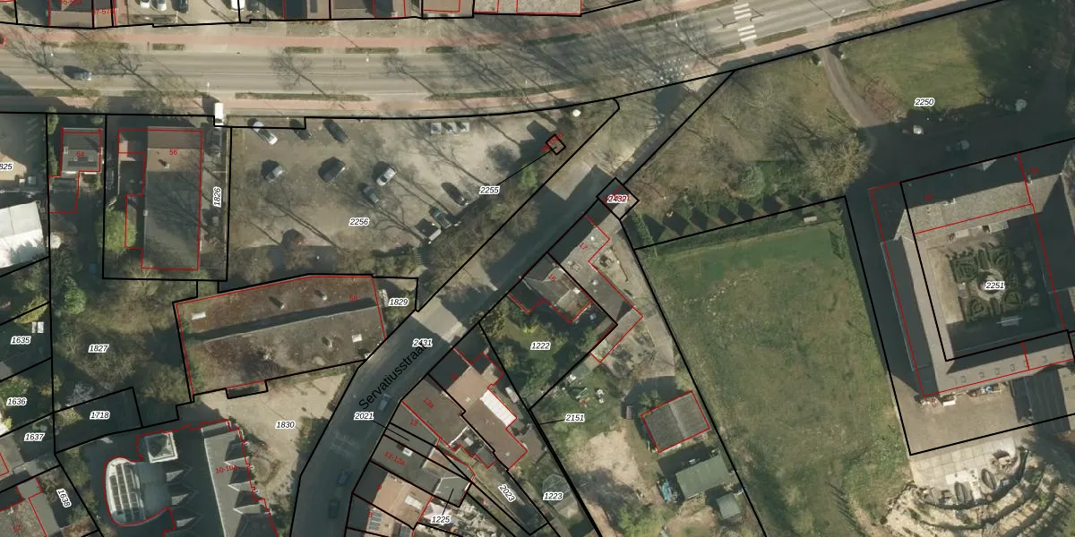 Het perceel waarop Servatiusstraat 16 staat heeft een oppervlakte van 375 m². Dit is een groot perceel. De perceeloppervlakte wordt geregistreerd door het Kadaster. Gedetailleerde informatie over de maten van dit perceel kunt u vinden in het rapport Kadastrale kaart met maatvoering van Servatiusstraat 16.