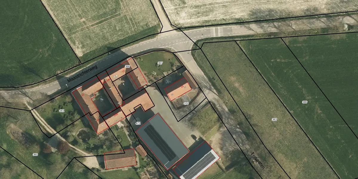 Terstraten 14 is gelegen op kadastraal perceel NUT00N370. Deze kadastrale aanduiding is uniek en wordt gebruikt door het Kadaster om eigendomsrechten en andere zakelijke rechten vast te leggen. Het perceel maakt onderdeel uit van de kadastrale gemeente Nuth.