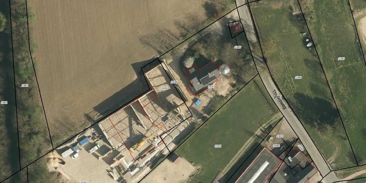 Het perceel waarop Thullerweg 2-b staat heeft een oppervlakte van 1943 m². Dit is een zeer groot perceel. De perceeloppervlakte wordt geregistreerd door het Kadaster. Gedetailleerde informatie over de maten van dit perceel kunt u vinden in het rapport Kadastrale kaart met maatvoering van Thullerweg 2-b.