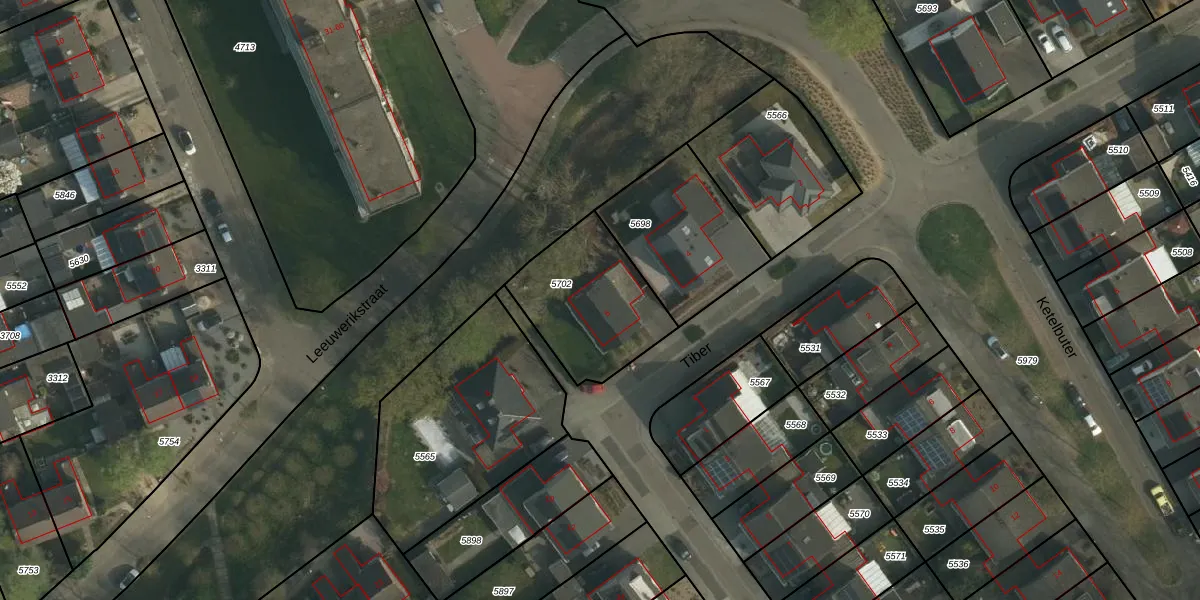 Het perceel waarop Tiber 6 staat heeft een oppervlakte van 453 m². Dit is een groot perceel. De perceeloppervlakte wordt geregistreerd door het Kadaster. Gedetailleerde informatie over de maten van dit perceel kunt u vinden in het rapport Kadastrale kaart met maatvoering van Tiber 6.