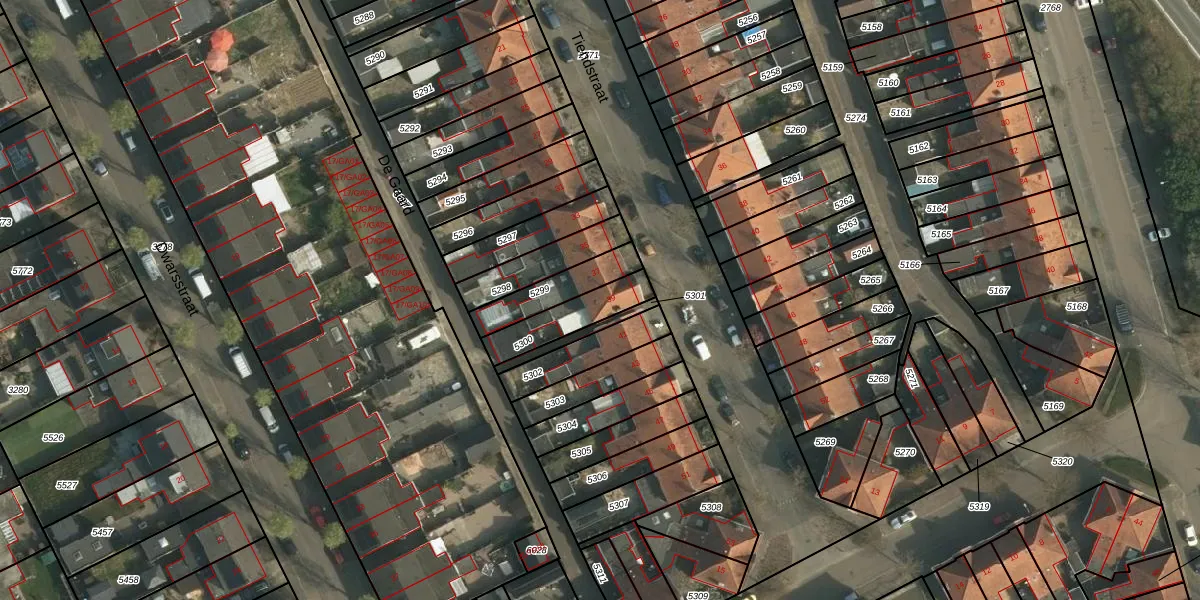 Het perceel waarop Tiendstraat 39 staat heeft een oppervlakte van 153 m². Dit is een middelgroot perceel. De perceeloppervlakte wordt geregistreerd door het Kadaster. Gedetailleerde informatie over de maten van dit perceel kunt u vinden in het rapport Kadastrale kaart met maatvoering van Tiendstraat 39.