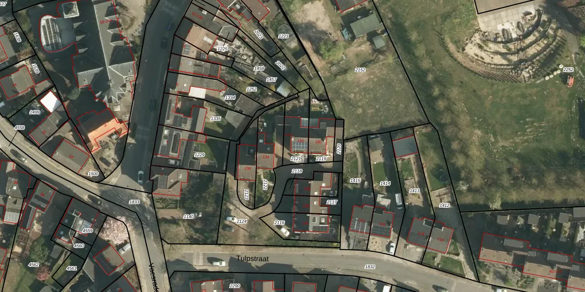 Tulpstraat 132 is gelegen op kadastraal perceel NUT00B2121. Deze kadastrale aanduiding is uniek en wordt gebruikt door het Kadaster om eigendomsrechten en andere zakelijke rechten vast te leggen. Het perceel maakt onderdeel uit van de kadastrale gemeente Nuth.