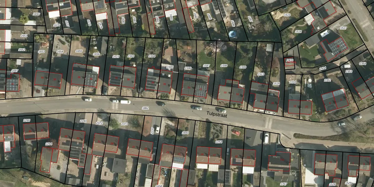 Gebruik de zoekbalk of klik op een perceel voor informatie over de adressen binnen dit perceel.