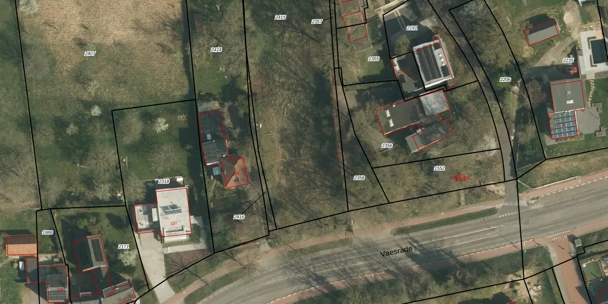 Het perceel waarop Vaesrade 111 staat heeft een oppervlakte van 2584 m². Dit is een zeer groot perceel. De perceeloppervlakte wordt geregistreerd door het Kadaster. Gedetailleerde informatie over de maten van dit perceel kunt u vinden in het rapport Kadastrale kaart met maatvoering van Vaesrade 111.
