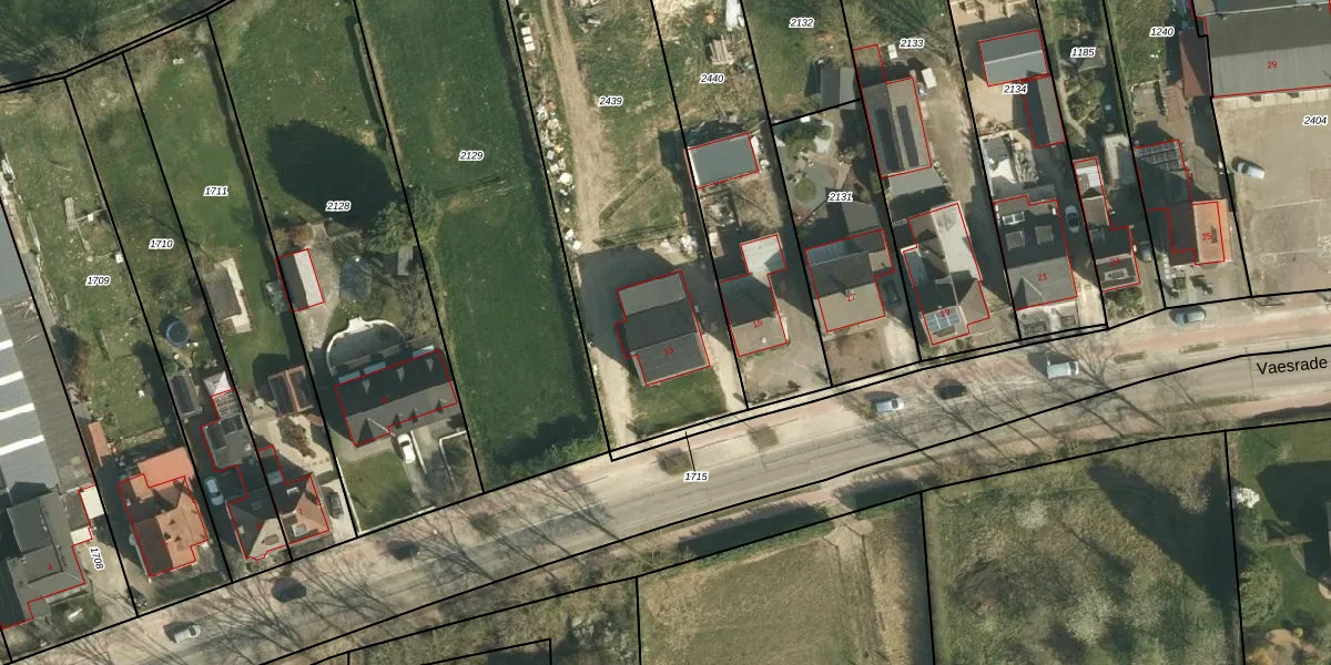 Het perceel waarop Vaesrade 13 staat heeft een oppervlakte van 2548 m². Dit is een zeer groot perceel. De perceeloppervlakte wordt geregistreerd door het Kadaster. Gedetailleerde informatie over de maten van dit perceel kunt u vinden in het rapport Kadastrale kaart met maatvoering van Vaesrade 13.