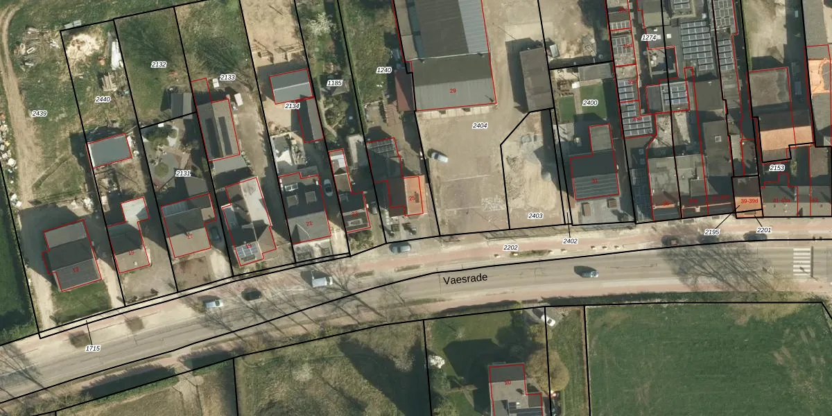 Het perceel waarop Vaesrade 25 staat heeft een oppervlakte van 900 m². Dit is een groot perceel. De perceeloppervlakte wordt geregistreerd door het Kadaster. Gedetailleerde informatie over de maten van dit perceel kunt u vinden in het rapport Kadastrale kaart met maatvoering van Vaesrade 25.