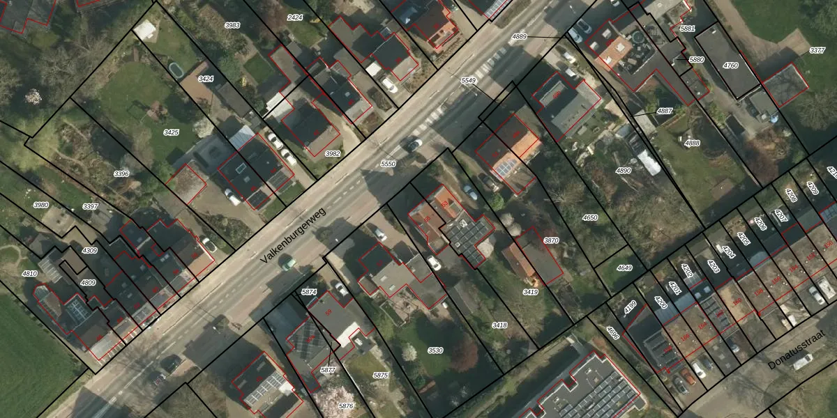Het perceel waarop Valkenburgerweg 55 staat heeft een oppervlakte van 435 m². Dit is een groot perceel. De perceeloppervlakte wordt geregistreerd door het Kadaster. Gedetailleerde informatie over de maten van dit perceel kunt u vinden in het rapport Kadastrale kaart met maatvoering van Valkenburgerweg 55.