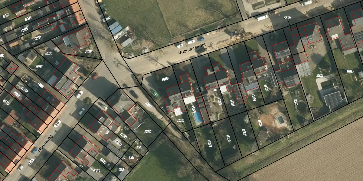 Het perceel waarop Voorsterstraat 93 staat heeft een oppervlakte van 388 m². Dit is een groot perceel. De perceeloppervlakte wordt geregistreerd door het Kadaster. Gedetailleerde informatie over de maten van dit perceel kunt u vinden in het rapport Kadastrale kaart met maatvoering van Voorsterstraat 93.