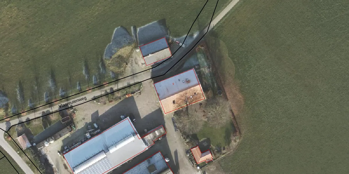 Het perceel waarop Vlasreutenweg 2 staat heeft een oppervlakte van 6,5 ha. Dit is een zeer groot perceel. De perceeloppervlakte wordt geregistreerd door het Kadaster. Gedetailleerde informatie over de maten van dit perceel kunt u vinden in het rapport Kadastrale kaart met maatvoering van Vlasreutenweg 2.