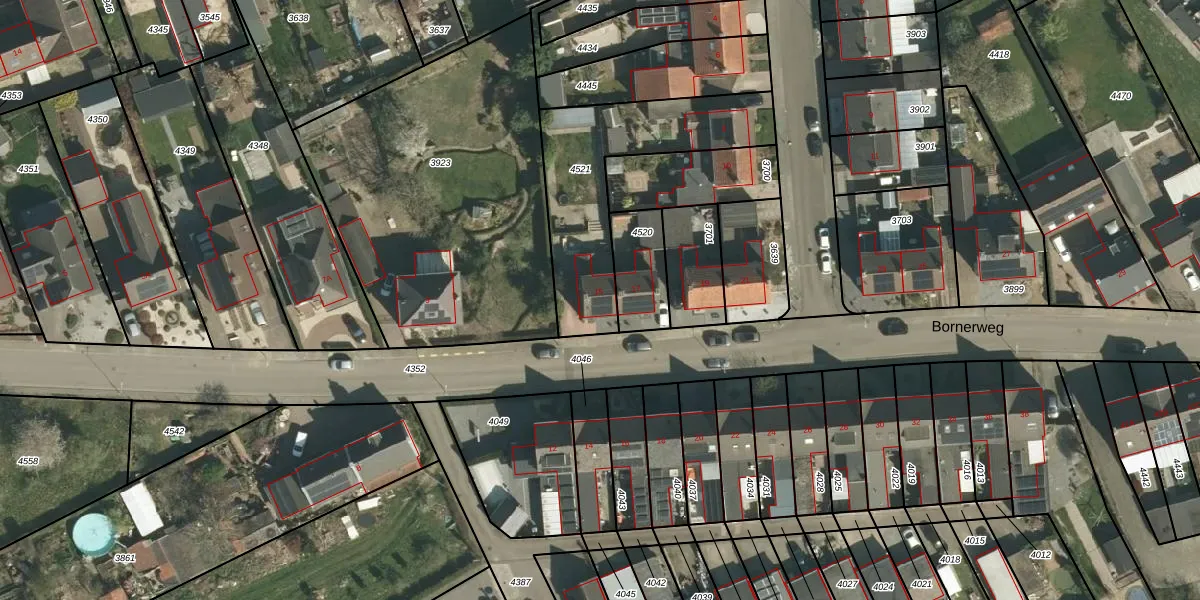 Het perceel waarop Bornerweg 15 staat heeft een oppervlakte van 634 m². Dit is een groot perceel. De perceeloppervlakte wordt geregistreerd door het Kadaster. Gedetailleerde informatie over de maten van dit perceel kunt u vinden in het rapport Kadastrale kaart met maatvoering van Bornerweg 15.