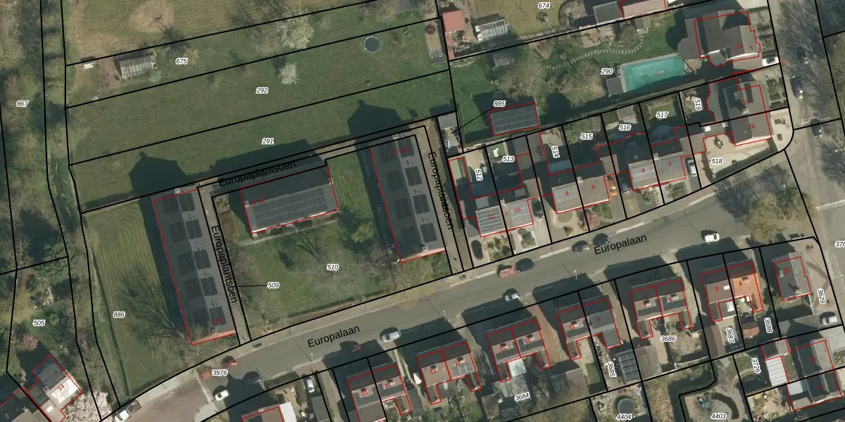 Het perceel waarop Europaplantsoen 21 staat heeft een oppervlakte van 1725 m². Dit is een zeer groot perceel. De perceeloppervlakte wordt geregistreerd door het Kadaster. Gedetailleerde informatie over de maten van dit perceel kunt u vinden in het rapport Kadastrale kaart met maatvoering van Europaplantsoen 21.