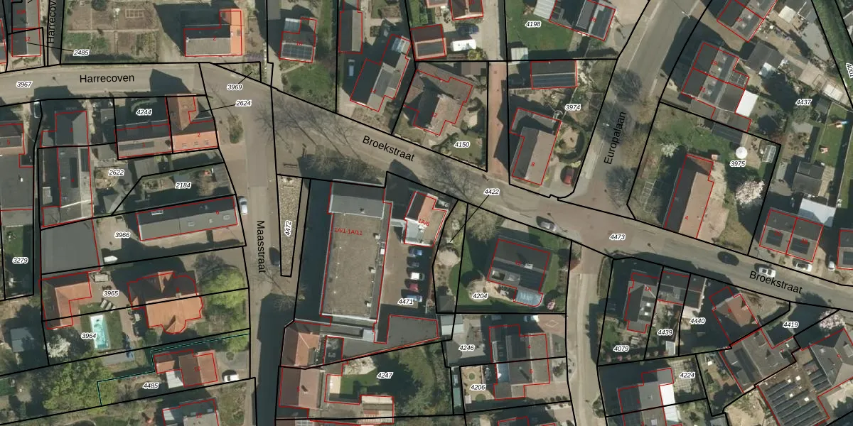 Het adres ligt op het perceel OBT00-B-4471, dat zich in de kadastrale gemeente Obbicht en Papenhoven bevindt. De gemiddelde perceelgrootte in Obbicht en Papenhoven is 2184,5 m². Dit perceel is kleiner: de perceeloppervlakte bedraagt 1333 m². De grootste perceeloppervlakte in de kadastrale gemeente is 9,9 ha. De kleinste oppervlakte bedraagt 0 m². Op het perceel zijn 11 adressen aanwezig. In de Basisregistratie Kadaster (BRK) werden de grenzen van het perceel geregistreerd op 17-07-2009.
