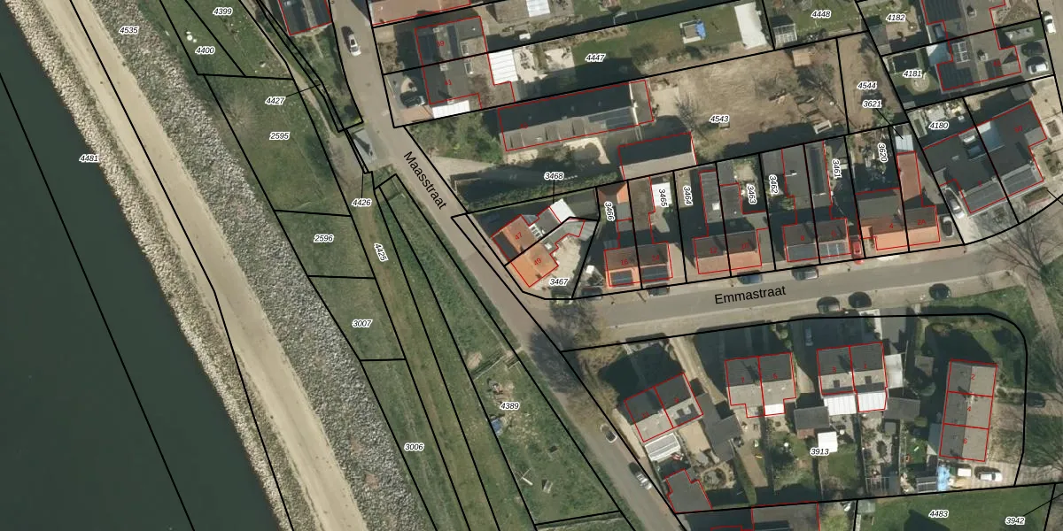 Maasstraat 49 is gelegen op kadastraal perceel OBT00B3467. Deze kadastrale aanduiding is uniek en wordt gebruikt door het Kadaster om eigendomsrechten en andere zakelijke rechten vast te leggen. Het perceel maakt onderdeel uit van de kadastrale gemeente Obbicht en Papenhoven.