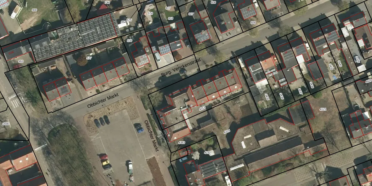 Obbichter Markt 25 is gelegen op kadastraal perceel OBT00B4313. Deze kadastrale aanduiding is uniek en wordt gebruikt door het Kadaster om eigendomsrechten en andere zakelijke rechten vast te leggen. Het perceel maakt onderdeel uit van de kadastrale gemeente Obbicht en Papenhoven.