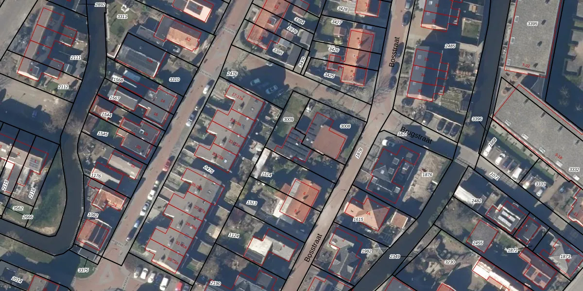Het perceel waarop Bosstraat 7 staat heeft een oppervlakte van 304 m². Dit is een groot perceel. De perceeloppervlakte wordt geregistreerd door het Kadaster. Gedetailleerde informatie over de maten van dit perceel kunt u vinden in het rapport Kadastrale kaart met maatvoering van Bosstraat 7.