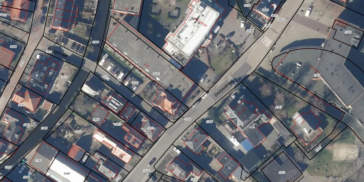 Het perceel waarop Brugstraat 12 staat heeft een oppervlakte van 861 m². Dit is een groot perceel. De perceeloppervlakte wordt geregistreerd door het Kadaster. Gedetailleerde informatie over de maten van dit perceel kunt u vinden in het rapport Kadastrale kaart met maatvoering van Brugstraat 12.