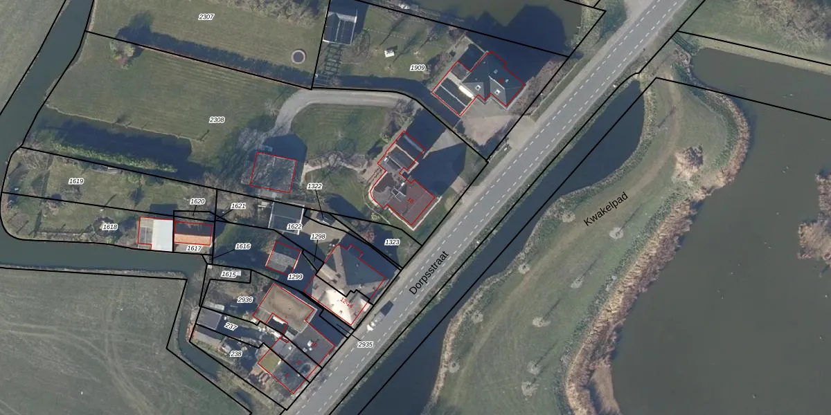 Het perceel waarop Dorpsstraat 18 staat heeft een oppervlakte van 3005 m². Dit is een zeer groot perceel. De perceeloppervlakte wordt geregistreerd door het Kadaster. Gedetailleerde informatie over de maten van dit perceel kunt u vinden in het rapport Kadastrale kaart met maatvoering van Dorpsstraat 18.