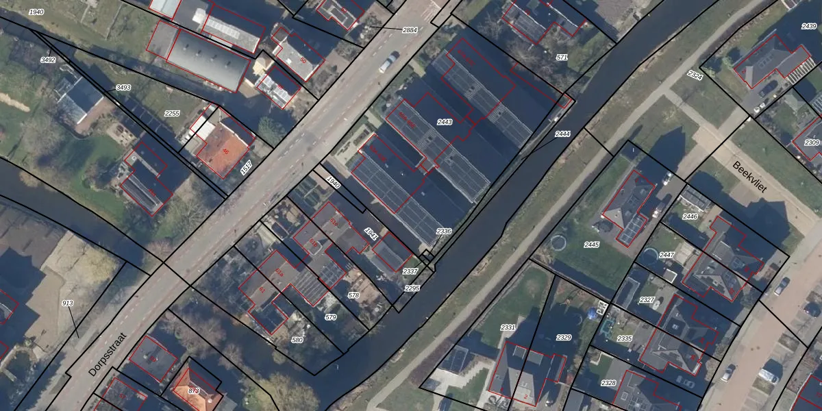 Het perceel waarop Dorpsstraat 63-E staat heeft een oppervlakte van 1770 m². Dit is een zeer groot perceel. De perceeloppervlakte wordt geregistreerd door het Kadaster. Gedetailleerde informatie over de maten van dit perceel kunt u vinden in het rapport Kadastrale kaart met maatvoering van Dorpsstraat 63-E.