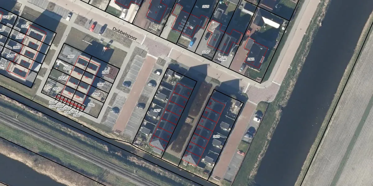 Dubbelspoor 12 is gelegen op kadastraal perceel ODM01E2427. Deze kadastrale aanduiding is uniek en wordt gebruikt door het Kadaster om eigendomsrechten en andere zakelijke rechten vast te leggen. Het perceel maakt onderdeel uit van de kadastrale gemeente Obdam.