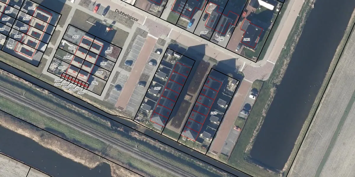 Dubbelspoor 16 is gelegen op kadastraal perceel ODM01E2427. Deze kadastrale aanduiding is uniek en wordt gebruikt door het Kadaster om eigendomsrechten en andere zakelijke rechten vast te leggen. Het perceel maakt onderdeel uit van de kadastrale gemeente Obdam.