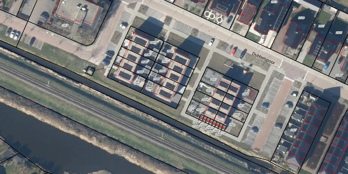 Gebruik de zoekbalk of klik op een perceel voor informatie over de adressen binnen dit perceel.